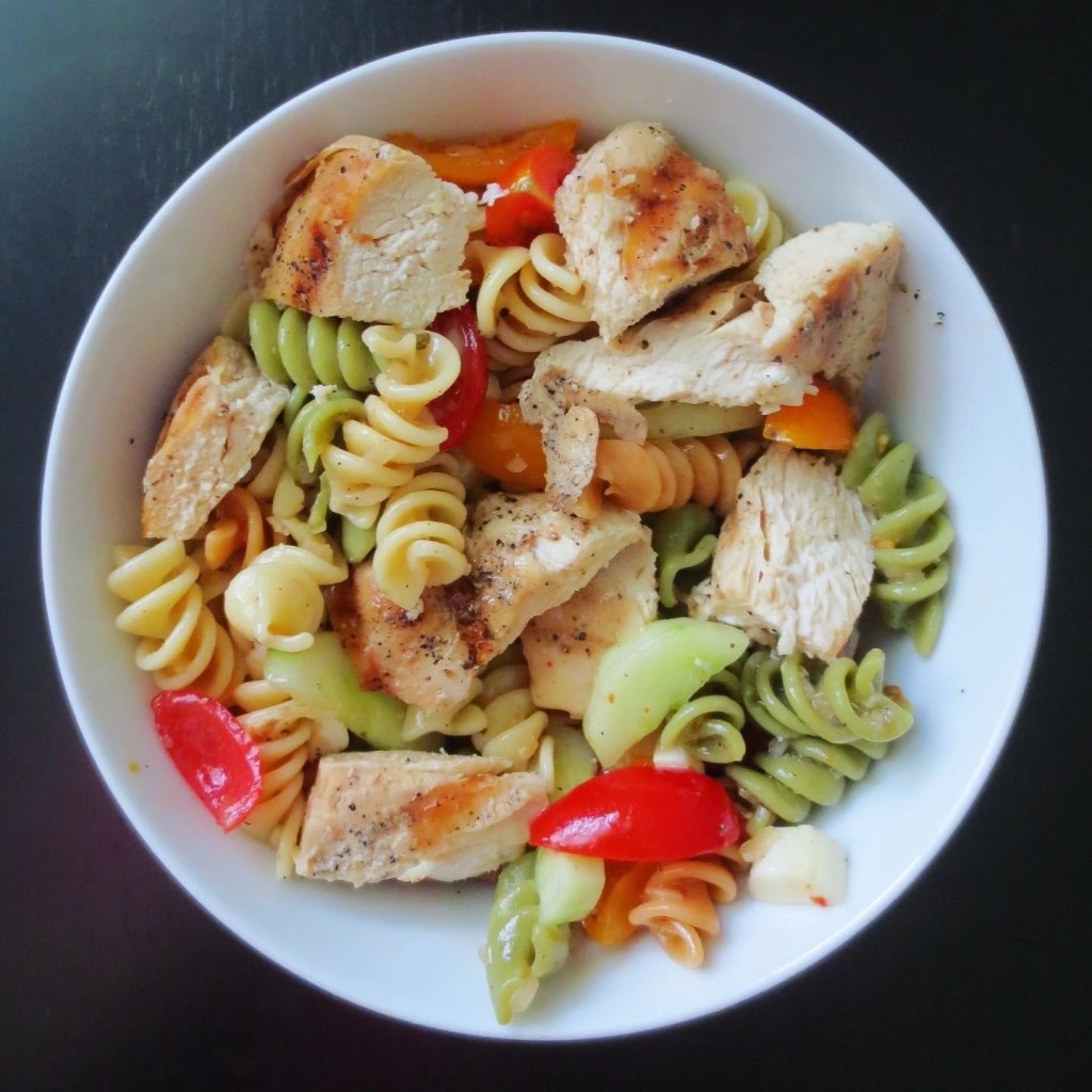 Just add your favorite protein for a complete and balanced meal. This Pasta salad made the perfect side for any potluck, barbecue, or cookout, but its perfect as a full meal at home if you just add your favorite protein.
