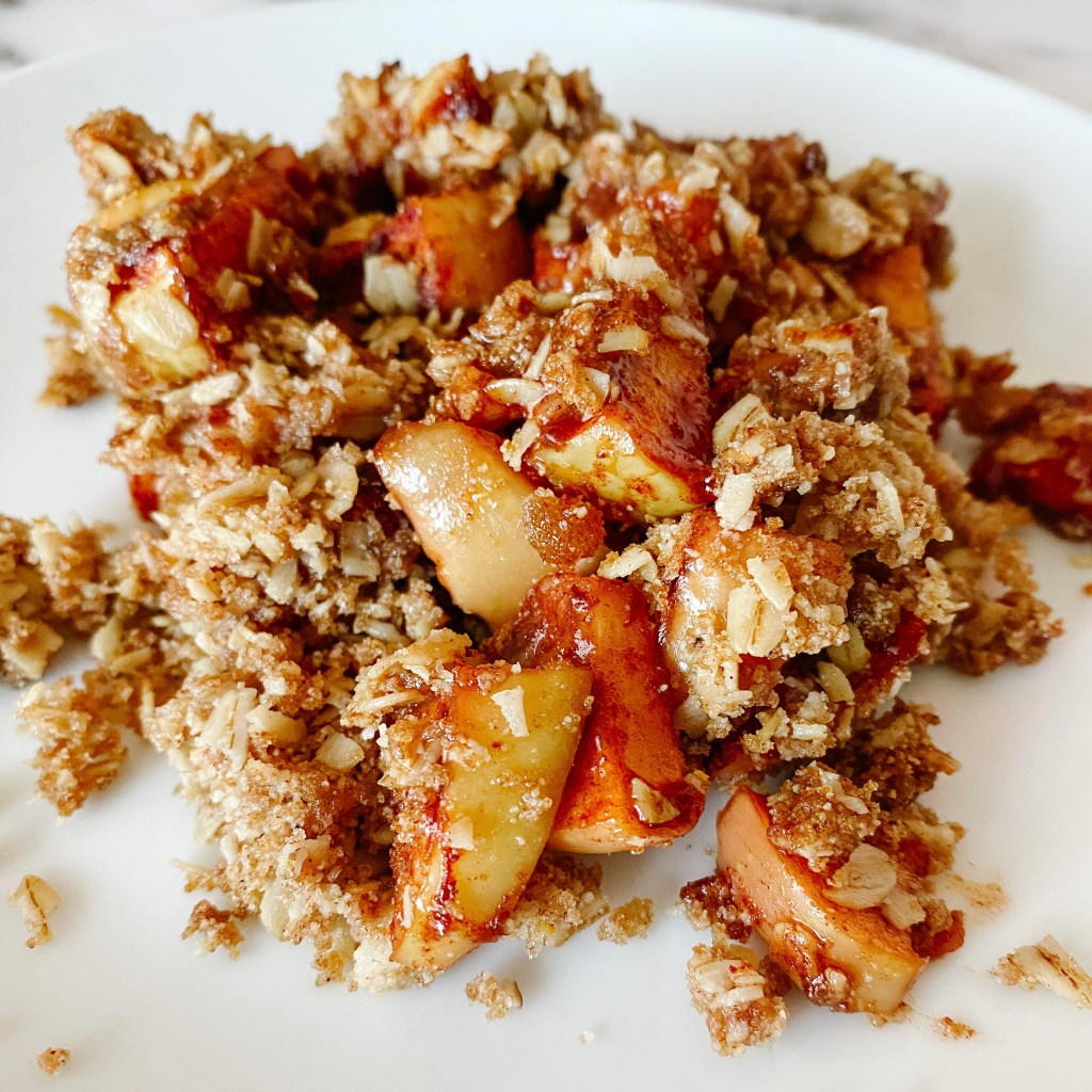 I spent a lot of time experimenting in the kitchen this weekend and discover air fryer desserts. I had a bunch of apples to use and I’d been craving apple crisp. So I decided to figure out how I could make it in the air fryer! After some research on how to even make desserts in the air fryer, I came up with this warm, cinnamon apple crisp! It’s a lighter version of apple crisp that still has amazing flavor and texture.