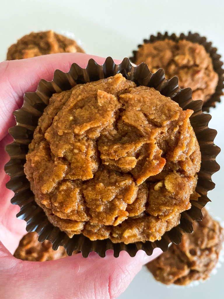 Each muffin is 145 calories and has 7 g of protein and 3 grams of fiber. Pair it with some Greek yogurt or eggs for balanced breakfast. Or have two muffins with nut butter and you’re ready to go with a quick and filling breakfast.