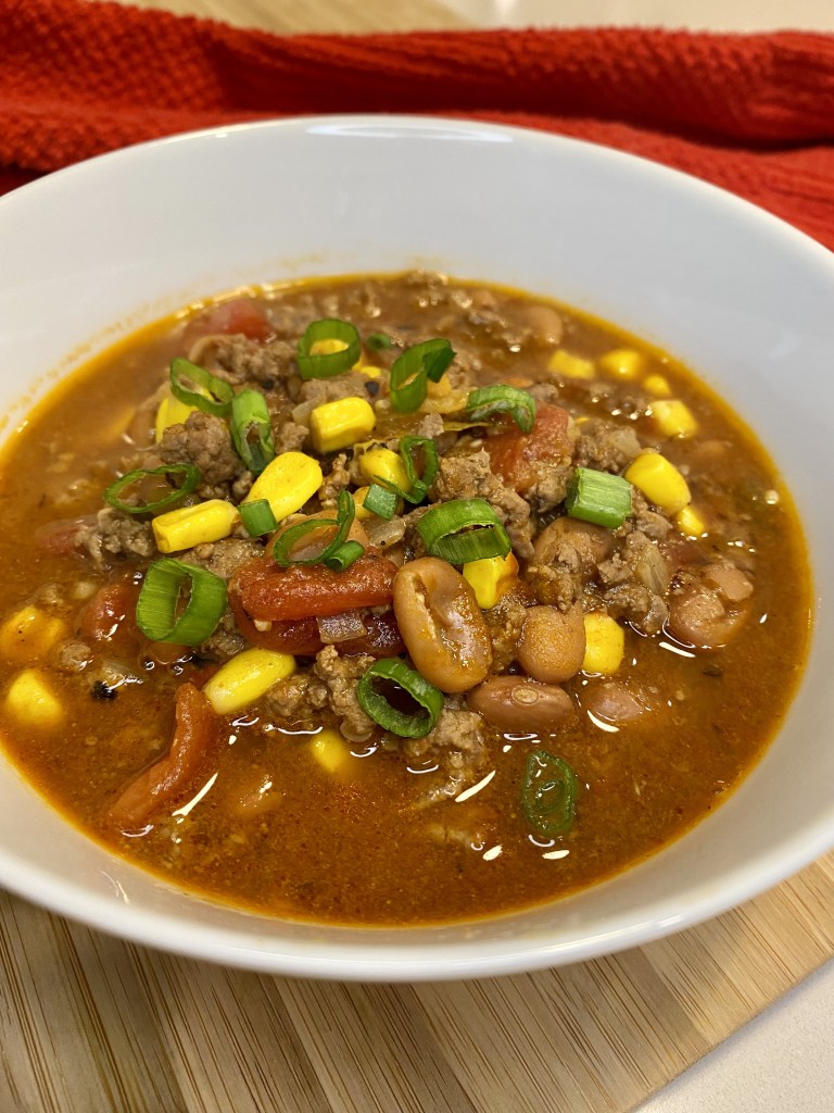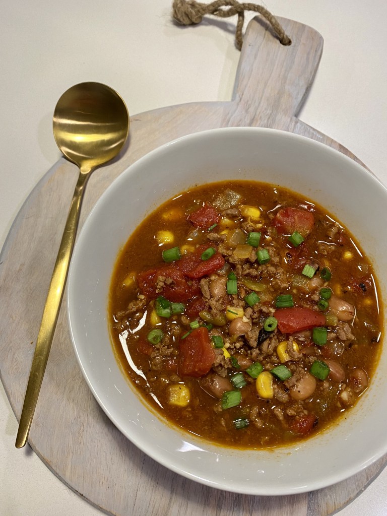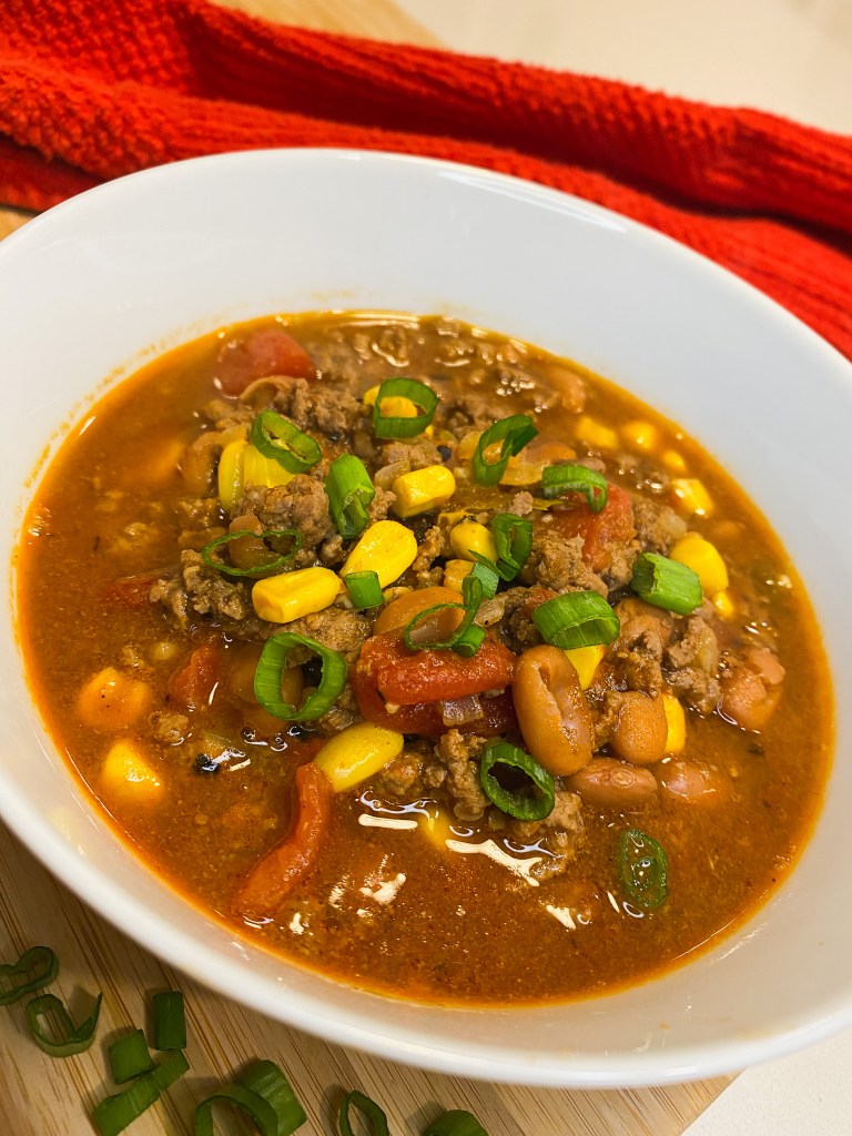 This soups makes for the perfect weeknight fall or winter meal. It’s full of flavor in done in less than 40 minutes, just brown the meat, dump the ingredients and let is simmer.